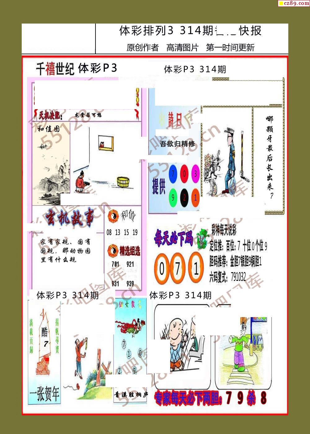 直通车早版314期体彩p3图谜
